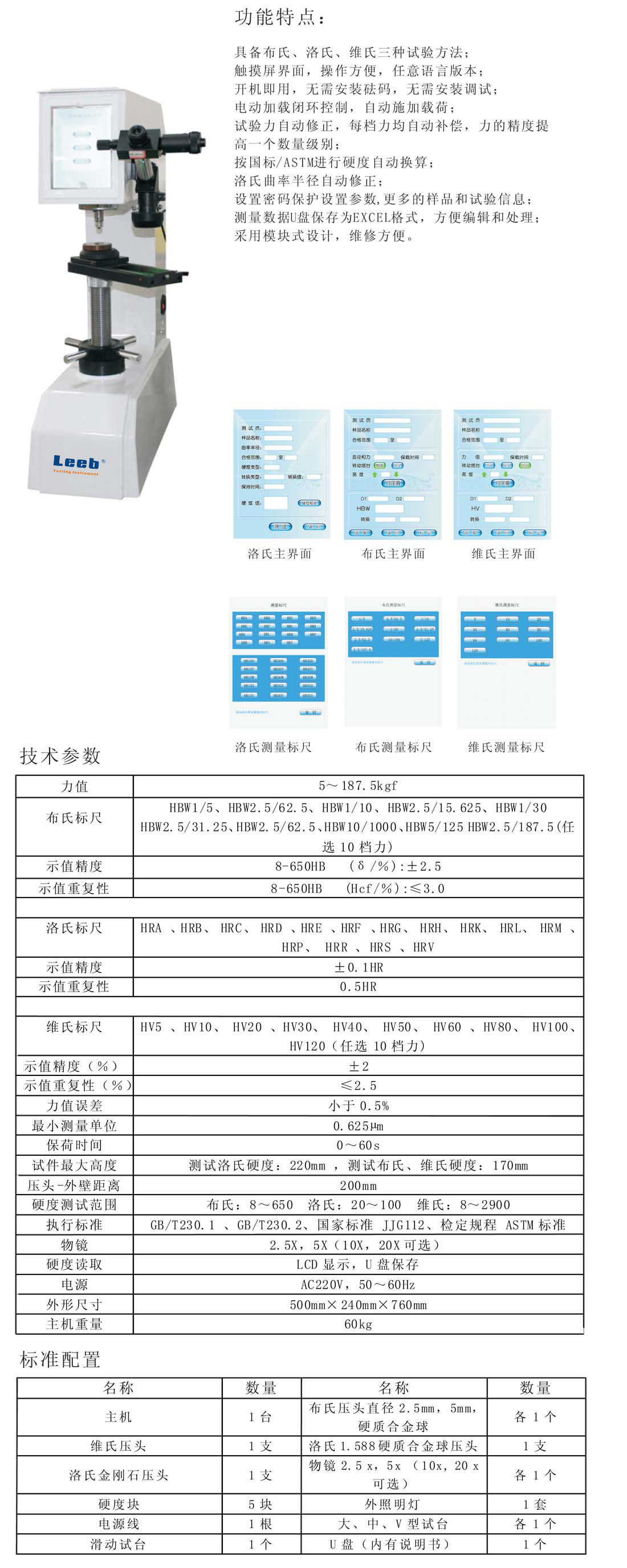 具備布氏、洛氏、維氏三種試驗(yàn)方法;