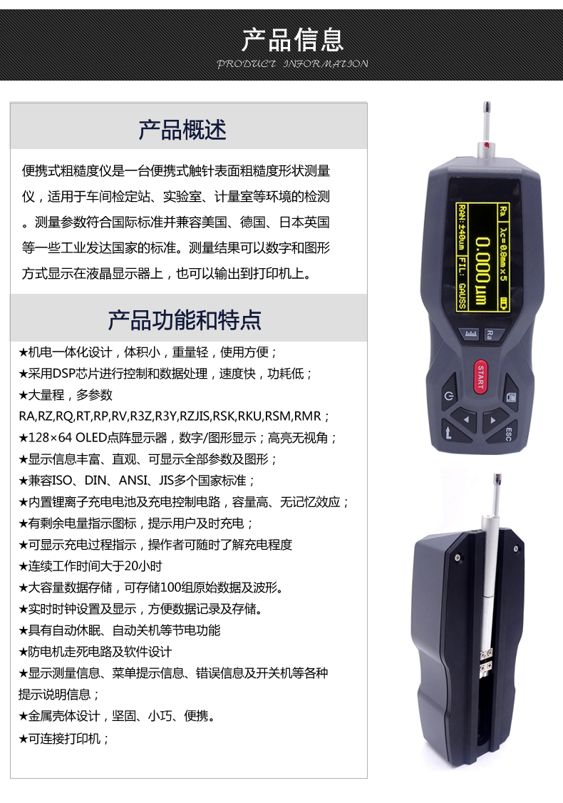 ★采用DSP芯片進行控制和數(shù)據(jù)處理,速度快,功耗低;大量程,21個參數(shù),多參數(shù)Ra,Rz,Rq,Rt,Rp,Rv,R3z,R3y,RzJIS,Rsk,Rku,Rsm,,Rs,Rpc,Rk,Rpk,Rvk,Ry,Mr1,Mr2,Rmax,;