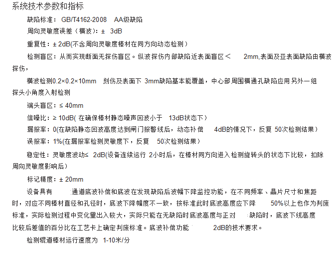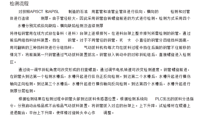 工作方式:超聲波探頭高速旋轉,工件勻速前進,則頭與工件非接觸,利用循環(huán)水形成的水膜進行耦合探傷。適合較小的圓管及棒材.