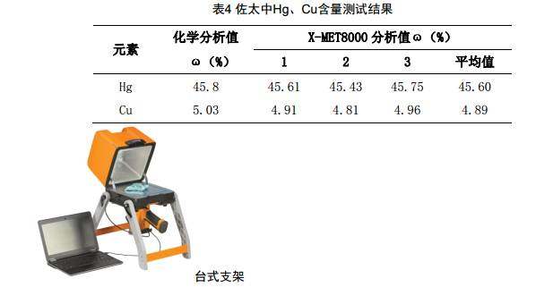 以藏藥“佐太”為例,“佐太”是藏語(yǔ)“仁青歐曲佐珠欽木”的簡(jiǎn)稱(chēng),又譯“佐臺(tái)” ( 衛(wèi)藏、安多語(yǔ))、“佐塔” ( 康巴語(yǔ)) 。“佐”是煉制,“太”指灰、粉末,意思是緞燒成灰,合為水銀煅灰,也就是在金屬汞中加以多種輔助藥物,經(jīng)過(guò)洗、浸、煮等多道復(fù)雜炮制工藝,去垢、去銹、除汞毒,然后加以多種重金屬,煅炭存性而成的水銀灰藥,謂之佐太。 通常認(rèn)為,藏藥“佐太”含有8種金屬和8種礦物,這8 種金屬是金、銀、紅銅、青銅、黃銅、鐵、鉛、錫,統(tǒng)稱(chēng)“能持八鐵”或稱(chēng)“能持八金屬”。 利用X-MET8000儀器可以完成對(duì)佐太中重金屬的分析,表4為儀器分析值和化學(xué)分析值。