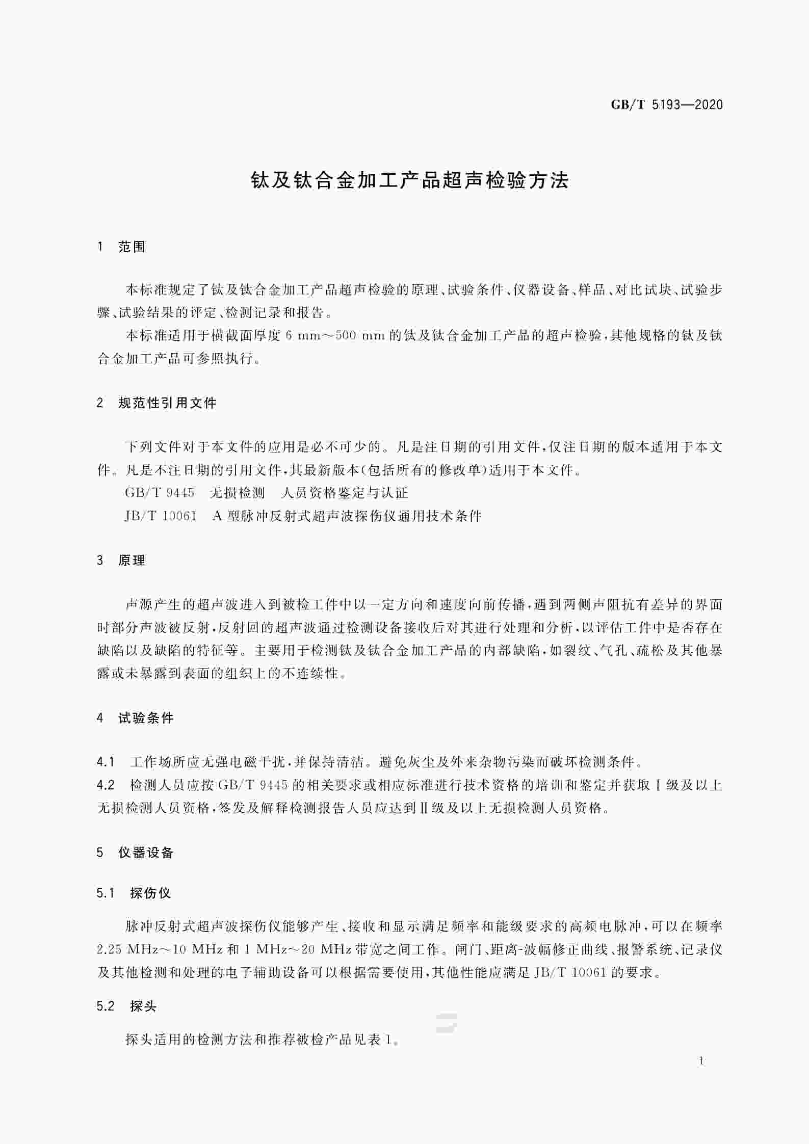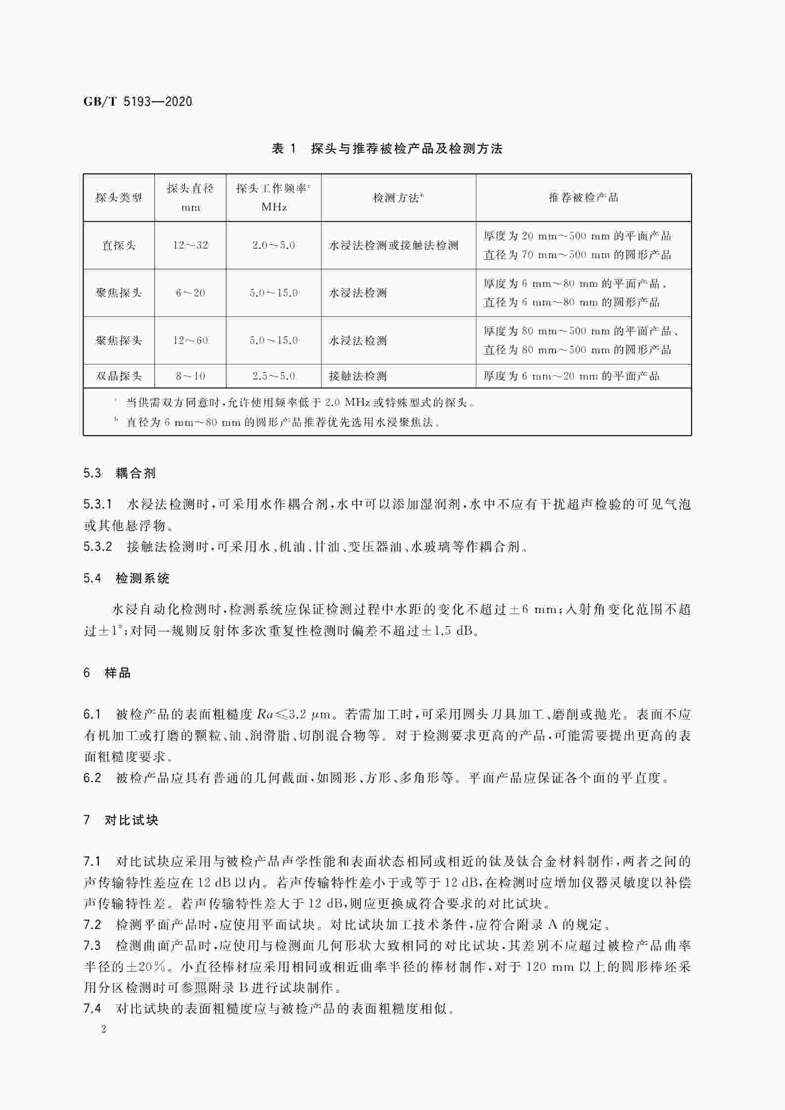GB∕T 5193-2020 鈦及鈦合金加工產(chǎn)品超聲檢驗(yàn)方法