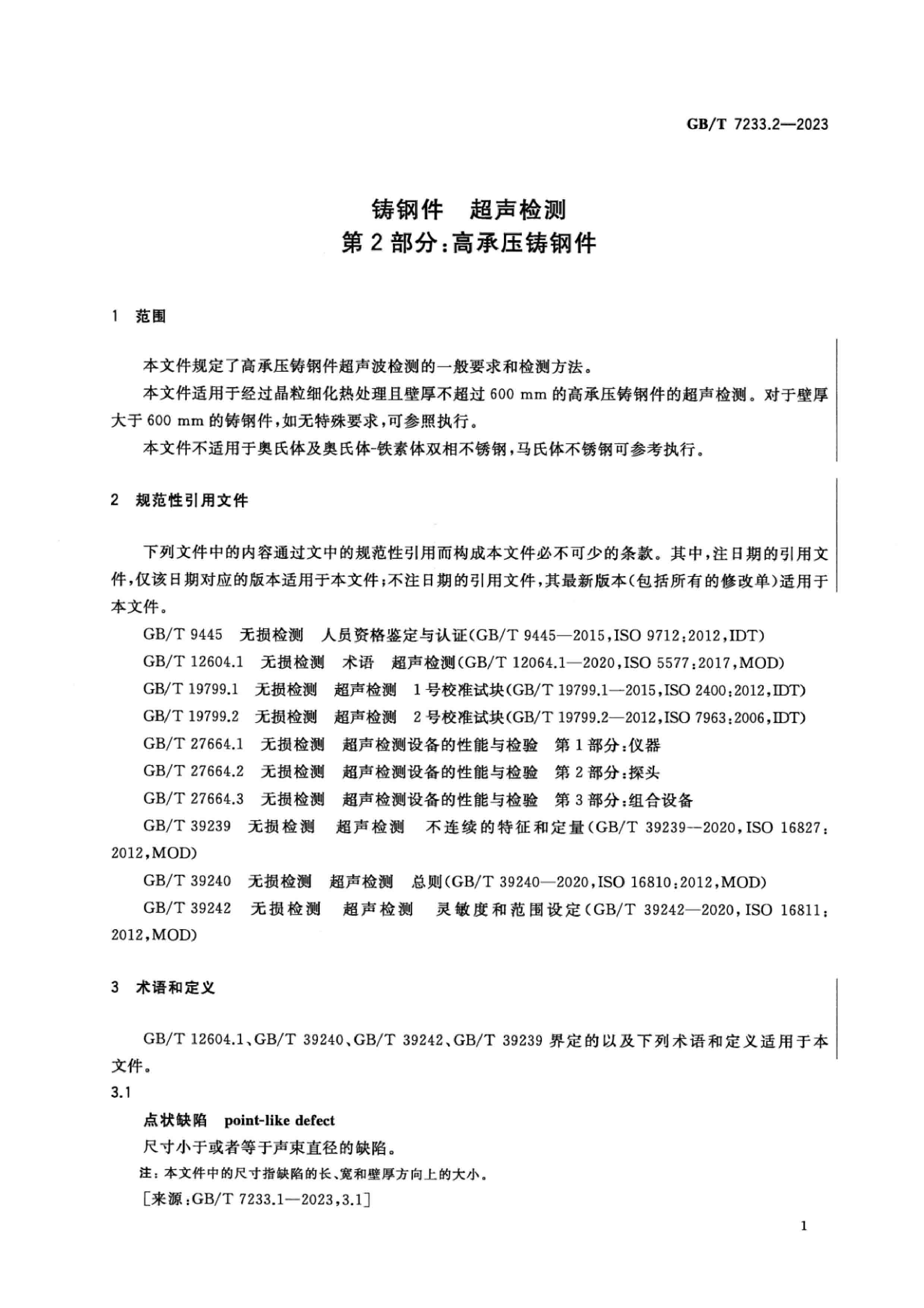 GBT 7233.2-2023 鑄鋼件 超聲檢測 第2部分:高承壓鑄鋼件